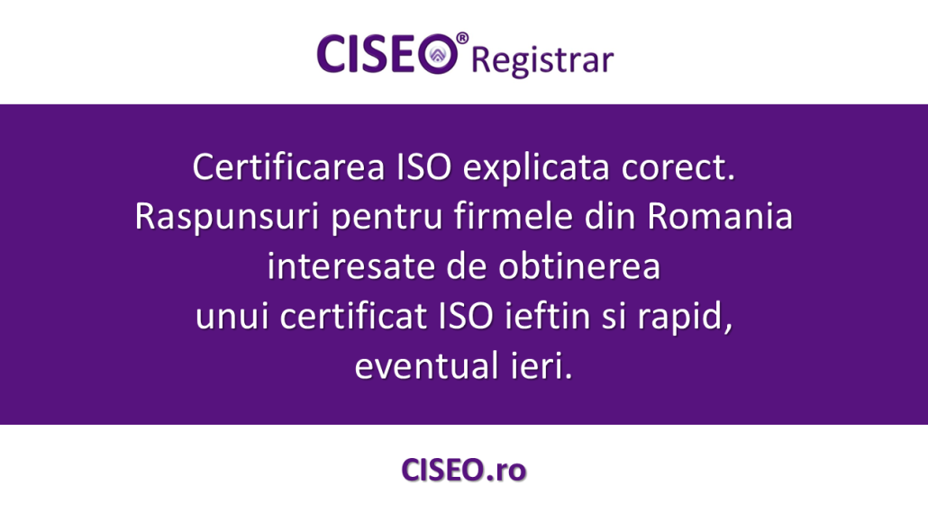 Certificarea ISO explicata corect. Raspunsuri pentru firmele din Romania interesate de obtinerea unui certificat ISO ieftin si rapid, eventual ieri.